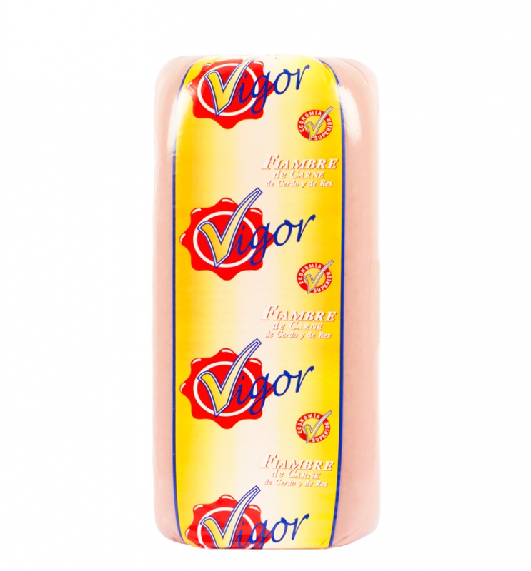 Carne de cerdo y de res, agua, sal, azúcar, aglutinantes proteicos e hidrocarbonados (máx. 7%), carragenato, tripolifosfato de sodio, eritorbato de sodio y nitrito de sodio.